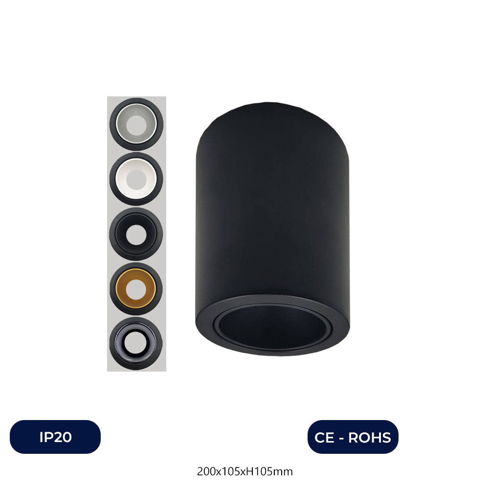 Transformez vos espaces avec le plafonnier pour lampes GU10-MR16. Personnalisez votre éclairage en choisissant la couleur de l'anneau intérieur inclinable entre blanc, noir, argent, doré ou noir mat. Son design minimaliste et élégant ajoute de l'exclusivité à n'importe quel environnement, alliant parfaitement style et fonctionnalité. Idéal pour créer des scènes uniques et sophistiquées, cet accessoire offre une touche originale qui rehausse l'esthétique de n'importe quel espace.