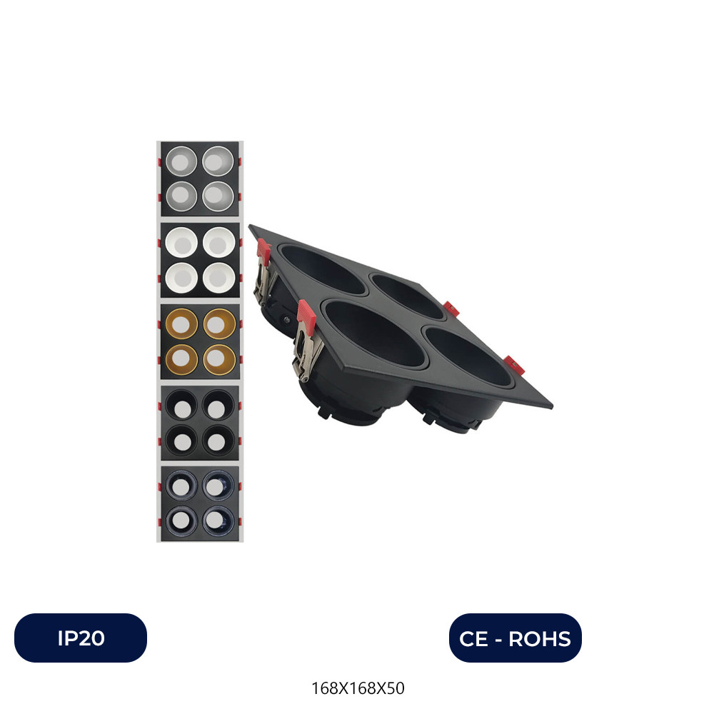 Plafonnier quadruple inclinable - GU10-MR16 - Extérieur noir