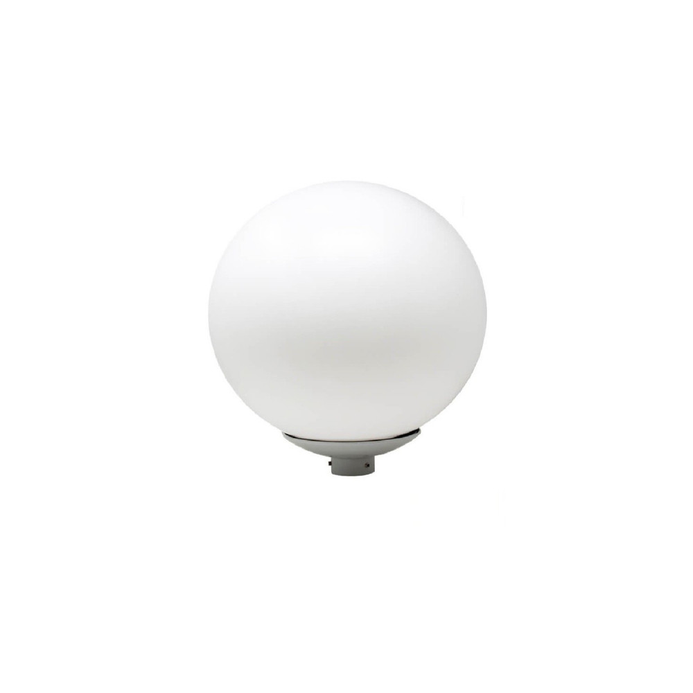 Nuestra farola tipo Globo está fabricada mediante moldeo por inyeccion en Polietileno blanco polimérico (PE). La basede la luminaria dispone de casquillo E27 fabricada por inyección en Policarbonato (PC) gris de alta densidad.