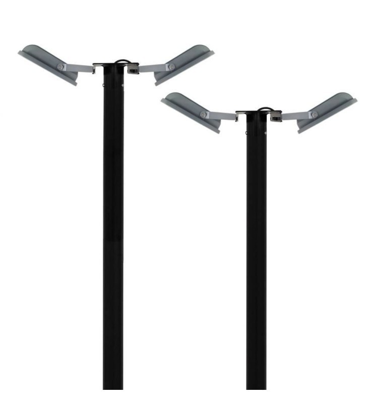 Platine pour 1 ou 2 projecteurs LED sur un mât d'éclairage public. En acier. Peinture au four à base de polyuréthane à haute résistance.Parfait pour l'éclairage de grandes surfaces.