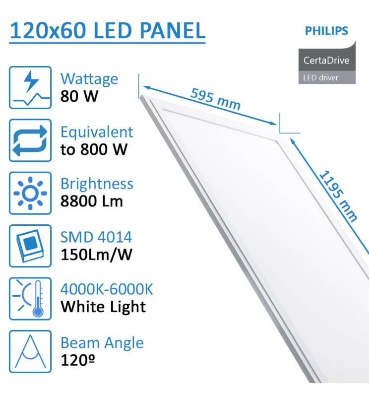 Dalle LED 120x60 80W - CERTA Driver Philips Garantie 5 ans