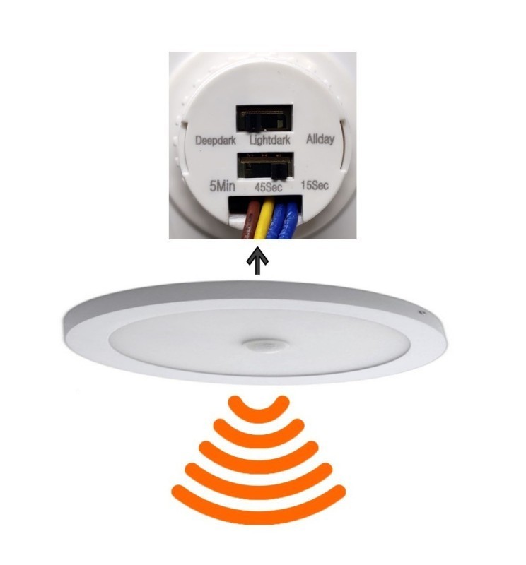 Grâce à son détecteur de luminosité, il est capable de se mettre en service dès qu'il est nécessaire de l'allumer, c'est-à-dire que lorsque la lumière naturelle commence à s'éteindre, ce plafonnier en saillie la détecte et commence son fonctionnement. Le détecteur permet également 3 réglages de temps : 15 secondes - 45 secondes - 5 minutes.