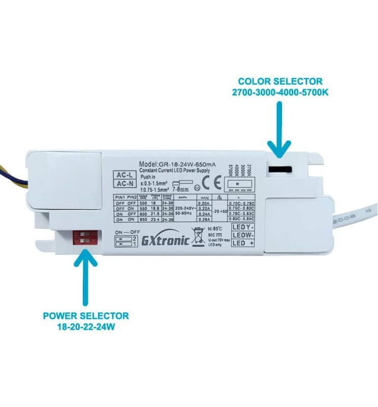 | Puissance nominale | 24W - 22W- 20W -18W |