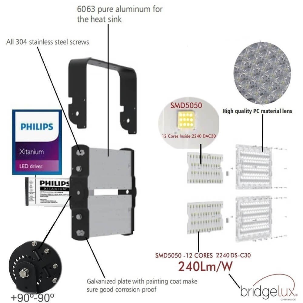 Projecteur LED 480W - STADIUM MATRIX - Driver Philips Xitanium - SMD5050 Bridgelux 240Lm/W Haute Luminosité