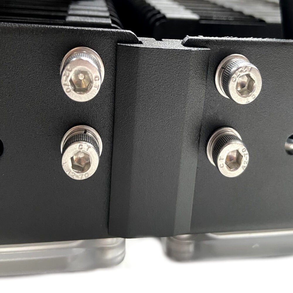 Le projecteur sportif STADIUM est composé de 2 modules de 120w et du driver PHILIPS XITANIUM pour les alimenter. Si nous voulons augmenter la puissance, nous devons acquérir les modules en 2, puisque le pilote y est préparé. De cette façon, nous pouvons avoir des projecteurs de 240W - 480W - 960W... En plus des modules et du driver, il dispose également de la plaque de sujétion du driver et du bras pour pouvoir le fixer à la surface souhaitée. De plus, il est orientable, ce qui nous permet de diriger la lumière là où nous le voulons.