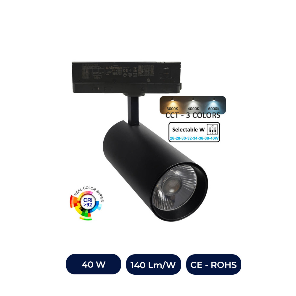 Spot LED 40W - 26W Noir TRIPHASE Rail - CCT - CRI+92 - UGR13 - HAUTE LUMEN